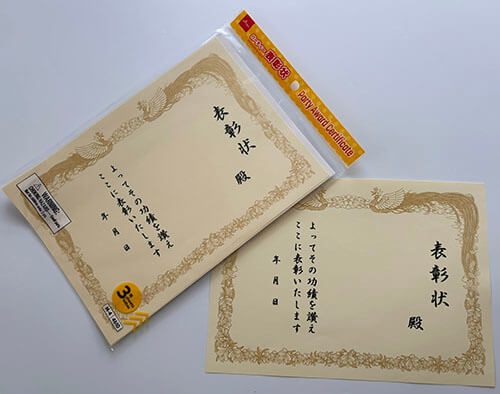 ダイソーでは”パーティ表彰状”の他に無地の”賞状用紙”も販売されています
