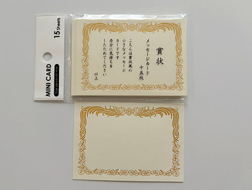 セリア 賞状ミニカード「ミニカード 賞状風15枚」(110円)
