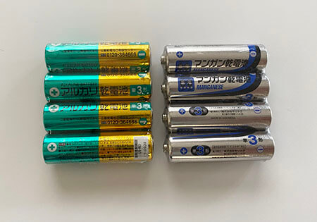 単三型乾電池も4本入りパックなどが販売されていますが、メーカー・種類によって本数が違う物も販売されています