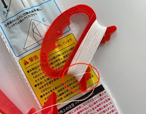 セリア レインボーカイトタコ糸が絡まってほどくのが面倒くさい!という事が起きてしまう事がありますが、糸を巻いた後切れ目に糸を挟んでおけばほどけて絡まってしまうのを予防できます